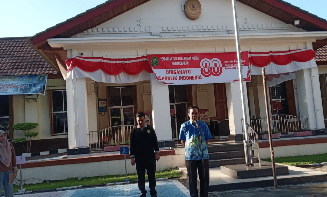 Padang, Jumat 22 Agustus 2025 Pengadilan Tata Usaha Negara Padang melaksanakan Kegiatan Apel sore dengan Pembina Apel Hari ini Bapak Mursalin Nadjib, S.H. dan Pemimpin apel yaitu Ibuk Asmanidar, S.H., Apel sore diikuti oleh Wakil Ketua, para Hakim, Pejabat Struktural dan Fungsional, Pegawai dan PPNPN Pengadilan Tata Usaha Negara Padang serta mahasiswa magang. Pembina Apel menghimbau seluruh Aparatur PTUN Padang untuk menjaga integritas dan kekompakan dalam melaksanakan tugas.